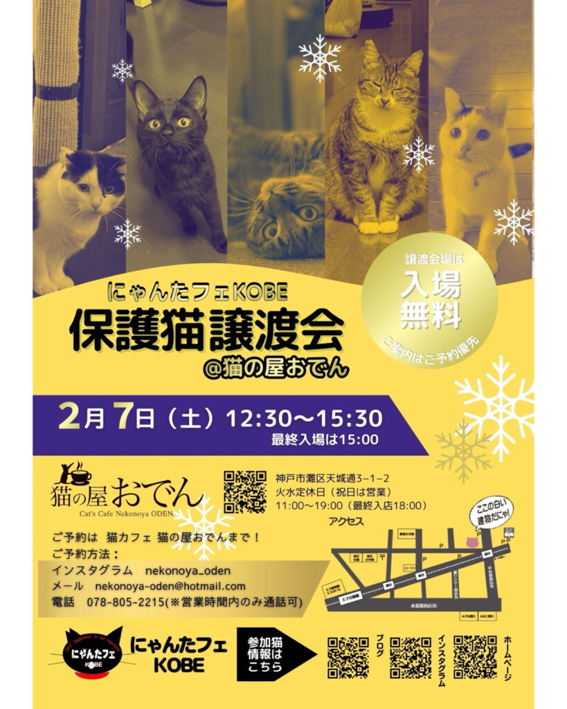 ● 【重要】台風接近に伴い中止となります。第12回 にゃんたフェ神戸主催 保護猫譲渡会